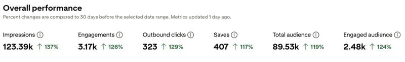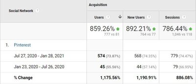 Pinterest typically takes 3-4 months to start seeing consistent traffic, and it keeps growing over time.