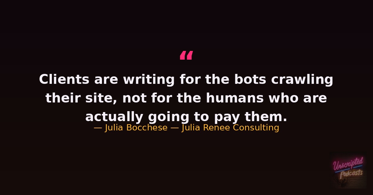 One of the things I kept coming back to throughout the conversation is something I see constantly with my clients: they get so focused on writing for Google or AI tools that they forget about the actual humans who are going to hire them!